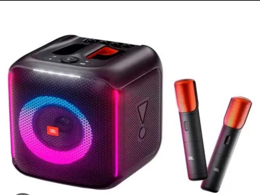 Caixa de som JBL PartyBox com microfone sem fio para usar no karaokê da sua festa